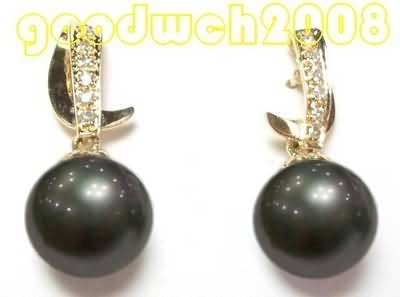 Akoya Tahitian Black Pearl Diamonds Drop Earrings Yellow Gold