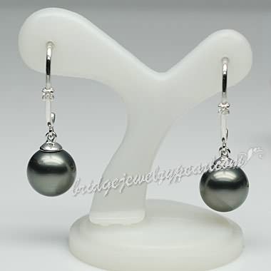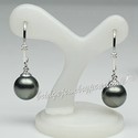 Solid White Gold Cultured Akoya Tahitian Black Pearl & Diamonds Hook Earrings, the fashion & classic hand made fine jewelry for wedding, birthday, anniversary.