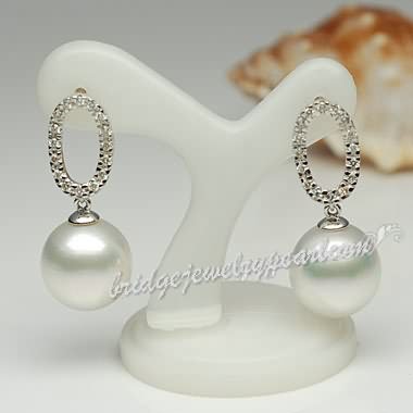 Circle Shaped Solid White Gold Cultured Akoya South Sea White Pearl & Diamonds Dangle Earrings, the fashion & classic hand made fine jewelry for wedding, birthday, anniversary.