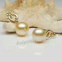 Circle Shaped Solid Yellow Gold Cultured Akoya South Sea Golden Pearl & Diamonds Dangle Earrings, the fashion & classic hand made fine jewelry for wedding, birthday, anniversary.