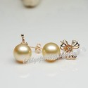 Cross Shaped 18K Solid Rose Gold Cultured Akoya South Sea Golden Pearl & Diamonds Dangle Earrings, the fashion & classic hand made fine jewelry for wedding, birthday, anniversary.
