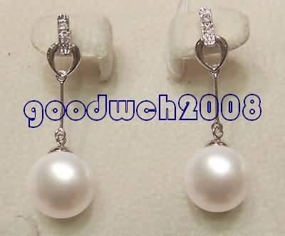 White Gold Akoya White Pearl & Diamonds Post & Drop Earrings, the fashion & classic hand made fine jewelry for wedding, birthday, anniversary.