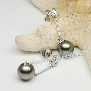 Leaf Shaped Solid White Gold Cultured Akoya Black Pearl Dangle Earrings, the fashion & classic hand made fine jewelry for wedding, birthday, anniversary.