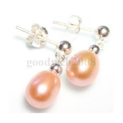 14k White Gold Freshwater Pink Pearl Post & Drop Earrings, the fashion & classic hand made fine jewelry for wedding, birthday, anniversary.