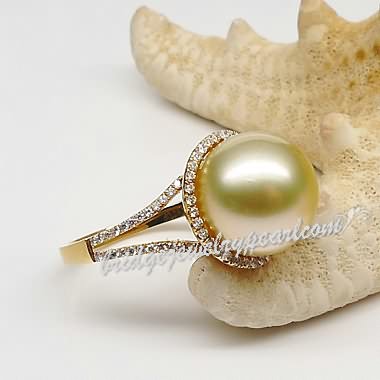 Yellow Gold Akoya South Sea Golden Pearl Diamonds Ring, resizable, size 4 size 5 size 6 Size 7 size 8 size 9 size 10, the fashion & classic hand made fine jewelry for wedding, birthday, anniversary.