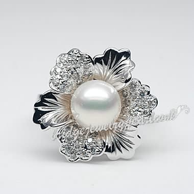 Flower Shaped White Gold White Pearl Diamonds Ring, resizable, size 4 size 5 size 6 Size 7 size 8 size 9 size 10, the fashion & classic hand made fine jewelry for wedding, birthday, anniversary.