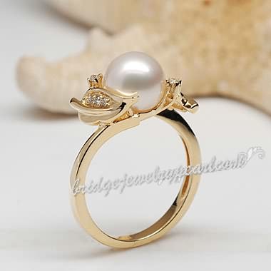 Flower Shaped Yellow Gold Akoya White Pearl Ring, resizable, size 4 size 5 size 6 Size 7 size 8 size 9 size 10, the fashion & classic hand made fine jewelry for wedding, birthday, anniversary.