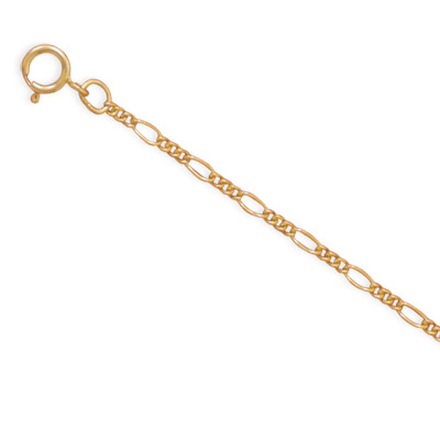 This is a 9 inch anklet with a 1 inch extension and a spring ring closure. This brand new anklet is a 1.5 millimeter 14/20 gold filled figaro chain anklet.