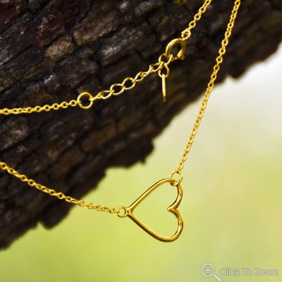 This beautiful brand new bracelet is genuine .925 sterling silver chain bracelet plated in genuine 14 Karat yellow gold with a spring ring closure. This 7 inch bracelet features an additional 1 inch extension chain and a sideways heart measuring approximately 14.5 millimeters. Sure to be noticed and admired whenever it is worn, this beautiful bracelet makes a wonderful gift to show your love for that special someone!