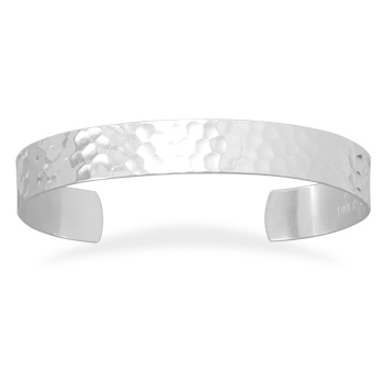 Hammered Finish 9.5mm Sterling Silver Cuff Bracelet