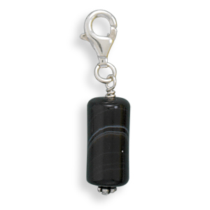 This brand new charm is a genuine .925 sterling silver charm featuring a tube shape genuine banded black onyx stone measuring 32 millimeters in length! This charm looks great on either a gold or silver chain, and it features a lobster clasp so that it can quickly be removed from one bracelet or necklace and easliy added to another!