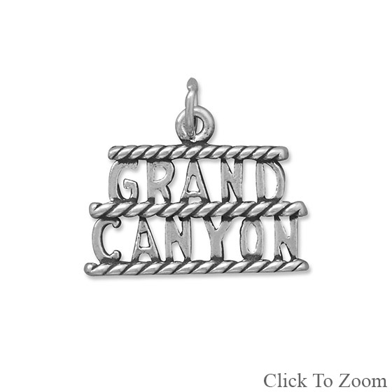 This charm is a brand new genuine stamped .925 sterling silver cut out "Grand Canyon" charm with an oxidized finish and it measures approximately 19.5 millimeters by 20.5 millimeters.