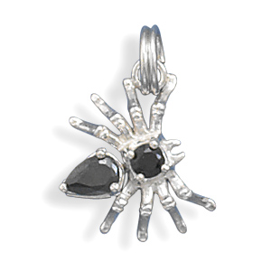 Sterling Silver and Black CZ Moveable Spider Halloween Charm