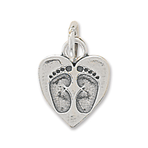 This charm is a brand new solid genuine stamped .925 sterling silver heart charm with baby footprints measuring 15 millimeters by 12 millimeters. This is a great gift charm to commemorate the birth of a child!