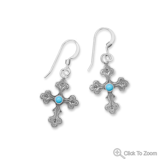 Cross with Turquoise Drop Design French Wire Earrings