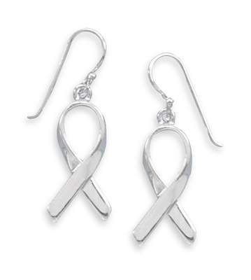 These brand new french wire design earrings are genuine .925 sterling silver and they feature the traditional awareness ribbon design to indicate your awareness and support for various diseases and causes. These awareness ribbon french wire earrings have a hanging length of 33 millimeters.