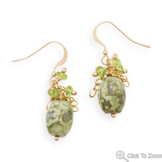 Handcrafted Gold Earrings with Rainforest Jasper and Peridot