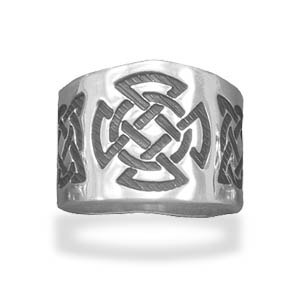 This brand new cigar band style ring is a genuine .925 sterling silver ring with a tapered band that tapers from 17.5 millimeters down to 9.5 millimeters and it features a handsome celtic design with an oxidized finish! This gentleman's ring is sure to be noticed and admired whenever it is worn, and it is available in whole sizes 9-13.