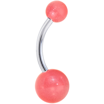 This brand new belly button ring is a 14 gauge (1.6mm) navel ring in high polished 316L surgical grade stainless steel. This curved bar design navel ring has a total length of 11 millimeters (7/16") and it features pink glow in the dark beads. Perfect for nights out on the town or turn on your black light and watch it glow!