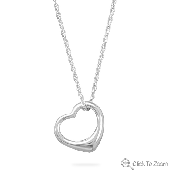 This brand new, genuine .925 sterling silver necklace is an 18" necklace in a light rope chain design with a spring ring closure for added safety and security, and it features a genuine .925 sterling silver free floating heart charm measuring 15 millimeters!