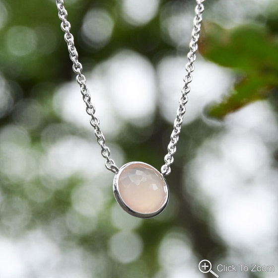 The beautiful freeform facet cut gives the stones extra brilliance, with lots of artistically irregular cuts along the top of the stones! This beautiful necklace is a brand new 16" + 2" extension rhodium plated sterling silver necklace with round freeform faceted pink chalcedony. The faceted chalcedony is approximately 13mm. The necklace has a lobster clasp closure.