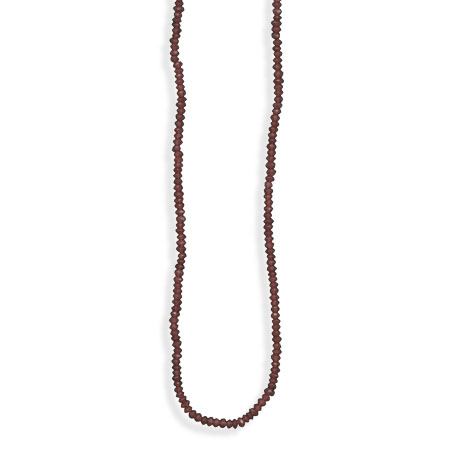 This brand new necklace is a genuine .925 sterling silver necklace. This 16" necklace features a 2" extension and garnet beads measuring between 3.5 millimeters to 4 millimeters! This is a fine quality garnet bead necklace at an exceptional price!