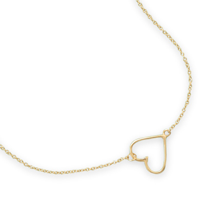 This beautiful brand new necklace is a genuine .925 sterling silver chain link necklace plated in genuine 14 karat yellow gold with a spring ring closure. This 16 inch necklace features an additional 2 inch extension chain and a sideways heart measuring approximately 14.5 millimeters. Sure to be noticed and admired whenever it is worn, this beautiful necklace makes a wonderful gift to show your love for that special someone!