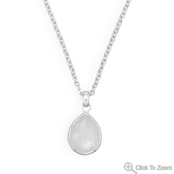 The beautiful freeform facet cut gives the stones extra brilliance, with lots of artistically irregular cuts along the top of the stones. This beautiful necklace is a brand new 16" + 2" extension rhodium plated sterling silver necklace with a freeform faceted pear shape moonstone drop. The faceted moonstone is approximately 12mm x 15mm. The bale is accented with three 1mm CZs. The necklace has a lobster clasp closure.
