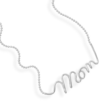 This brand new 18" necklace is a genuine .925 sterling silver bead chain necklace with a lobster clasp style closure. The chain features 1.2 millimeter beads with a beautiful genuine .925 polished sterling silver script style "Mom" pendant!