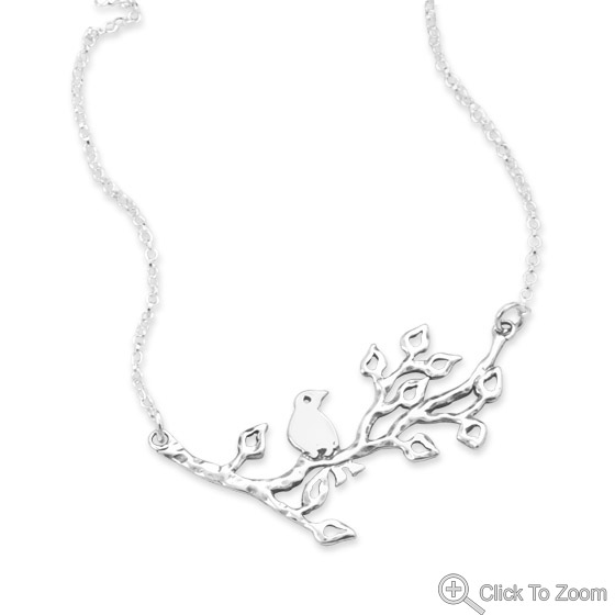 Sterling Silver Chain Necklace with Bird On a Branch Pendant