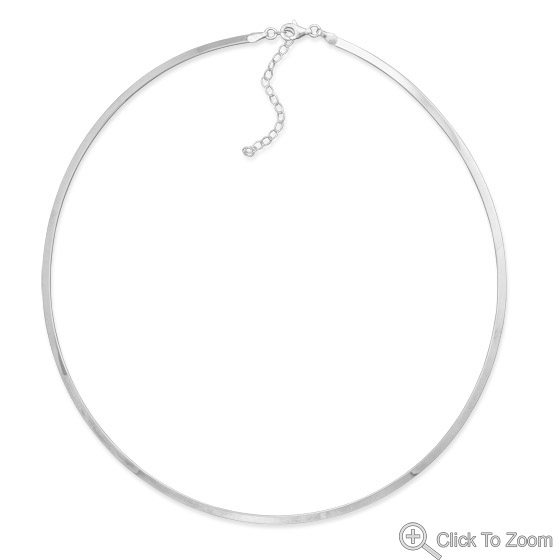 This classy necklace is a brand new 16" + 2" extension polished genuine .925 sterling silver 2.5 millimeter width flat collar necklace with a lobster clasp closure.