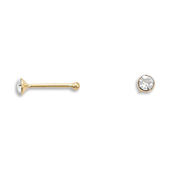 This brand new nose stud is a 14 karat gold over .925 sterling silver nose stud featuring a 2 millimeter round cubic zirconia diamond simulant.