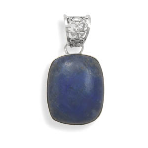 This brand new pendant is absolutely gorgeous and it will turn any ordinary chain necklace into a beautiful jewelry design! This pendant is a genuine .925 sterling silver pendant with an ornate cut-out design bale and it features a magnificent rectangular shape genuine Lapis stone measuring 30 millimeters by 24 millimeters! Sure to be noticed and admired whenever it is worn, this beautiful lapis pendant is an excellent addition to any fine jewelry collection!