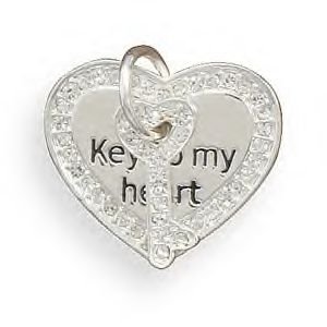 This beautiful brand new fashion pendant is a silver tone heart shaped pendant measuring over an inch long from the bale to the bottom of the heart with the words, "Key To My Heart" stamped across the front. This pendant features genuine Swarovski Crystals running along the top right side edge of the heart! In addition, this pendant has an attatched key charm measuring 7/8 inches long that is also totally encrusted with genuine Swarovski crystals! Solid and thick, this beautiful silver tone fashion pendant makes an outstanding gift for that someone special.
