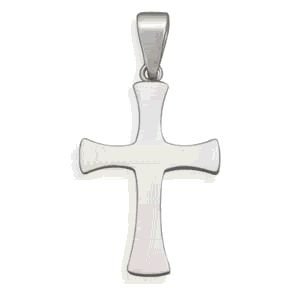 This cross design pendant is a brand new 316L stainless steel cross measuring 41 millimeters by 22 millimeters. This reversible cross has a high polished finish on one side and a matte finish on the other. This is a quality cross that any man can wear proudly.