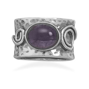 This brand new ring is a genuine .925 sterling silver ring with a very unique oxidized style textured band with a coil design and it features an 11 millimeter by 9 millimeter, genuine Amethyst center stone! This beautiful ring is available in whole sizes 6-9. All buyers are contacted via email upon purchase confirmation to verify their desired ring size prior to shipping. International buyers are welcome to contact us for a link to a ring size conversion chart to determine their correct corresponding ring size prior to purchase.