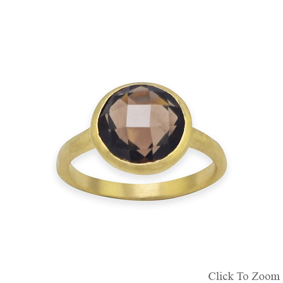 Brushed Finish 18 Karat Gold Plated Smoky Quartz Ring