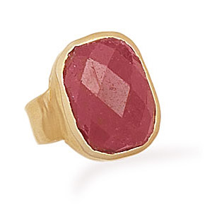 This brand new ladies ring is a 14 karat gold over .925 sterling silver band ring with a stylish matte finish and it features an oval shaped genuine rough-cut faceted Ruby measuring 20 millimeters by 14 millimeters! This genuine ruby ring is available in whole sizes 6-9. All buyers are contacted via email upon purchase confirmation to verify their desired ring size prior to shipping. International buyers are welcome to contact us for a link to a ring size conversion chart to determine their correct corresponding ring size prior to purchase.
