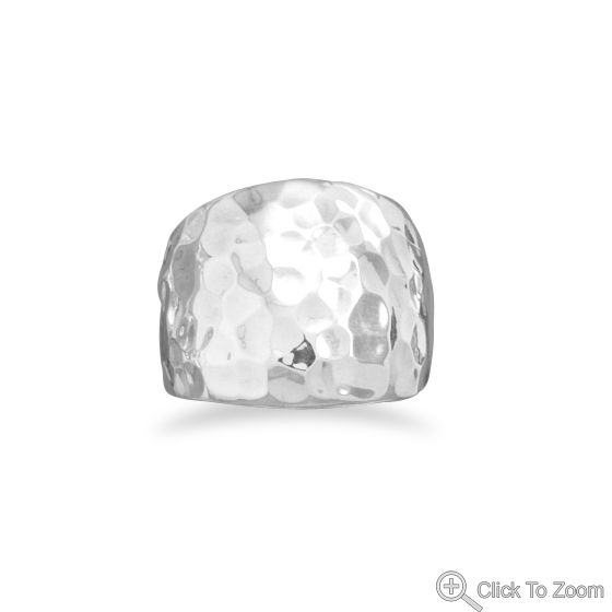 Hammered Cigar Band Sterling Silver Ring