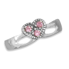 Sterling Silver Heart with Pink Crystals Toe Ring