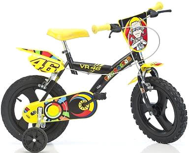Caracteristici: * Cadru rezistent din otel; * Scaun si ghidon ajustabile; * Roti gonflabile; * Diametru roti 14" (350 mm); * Aparatoare lant; * Spite din plastic rezistent; * Roti ajutatoare; * Aparatoare fata si spate; * Pinion mobil; * Frana de mana pe ambele roti. Bicicleta pentru copii Dino Bikes seria VR46 este recomandata baietilor cu inaltimea intre 97 - 125 cm.