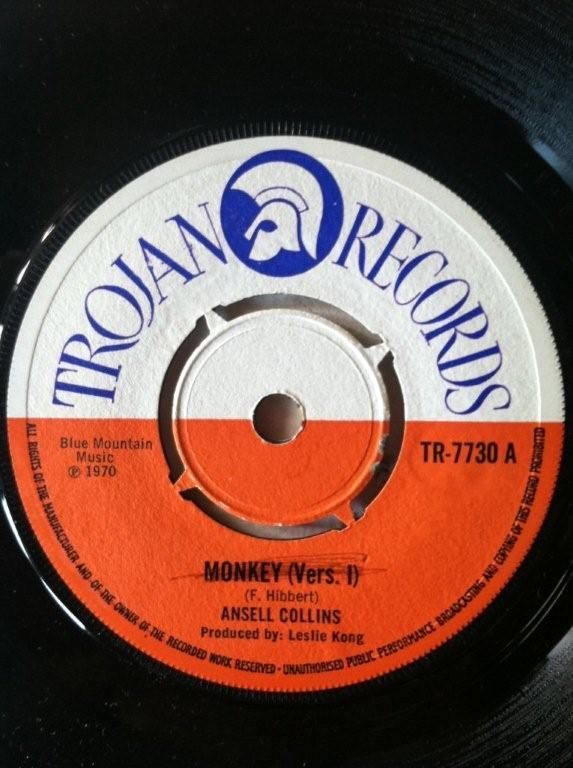 Ansell Collins on Trojan Records 7730 in VG++ condition - Monkey Vers 1 & 2.