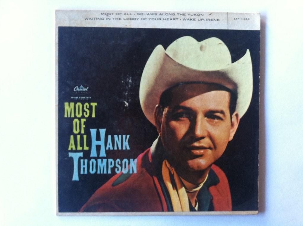 Hank Thompson, Most of All EP 1360 with Most Of All, Squaws Along The Yukon, Waiting in The Lobby of Your Heart and Wake Up Irene on Capitol label in VG+ condition.