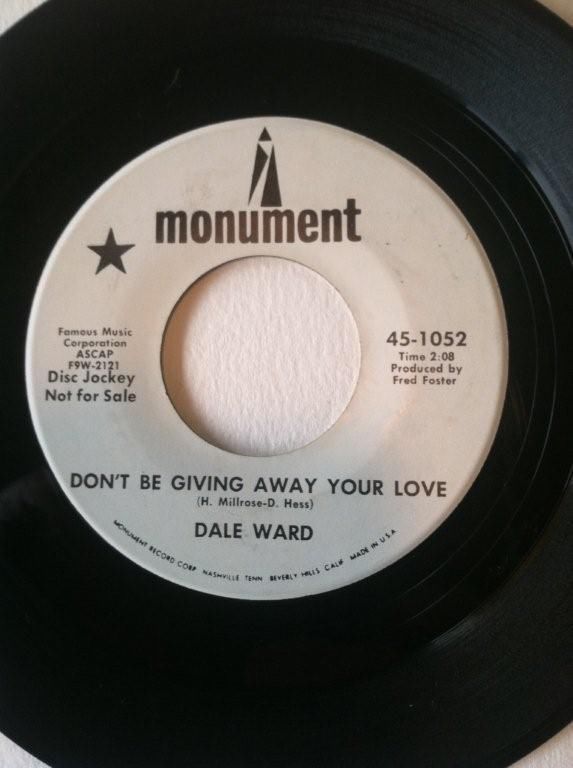Dale Ward, Don't be Giving Away Yor Love / Mama Don't Cry for Me on Monument 45-1052, record is in V++ condition.