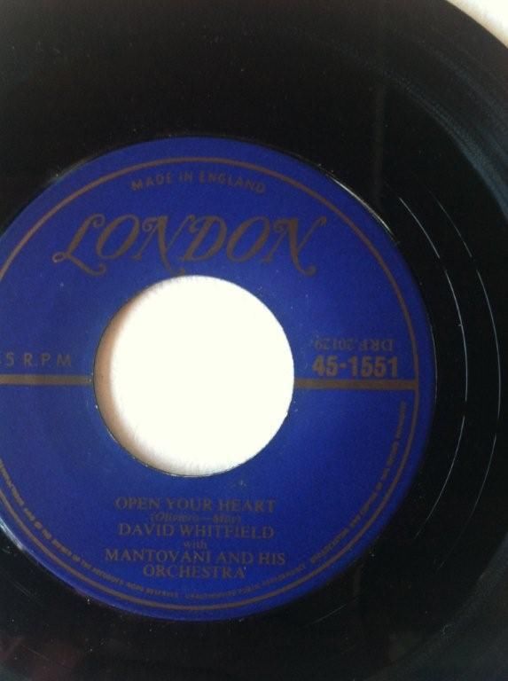 David Whitfield with Mantovani and his Orchestra, Ope Your Heart / Beyond the Stars in NM- condition.