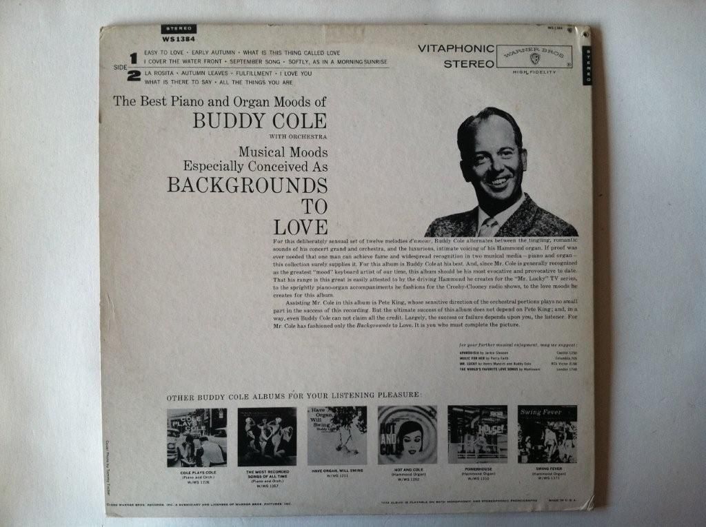 Buddy Cole, Backgrounds to Love on WB 1384 Stereo in VG++ condition