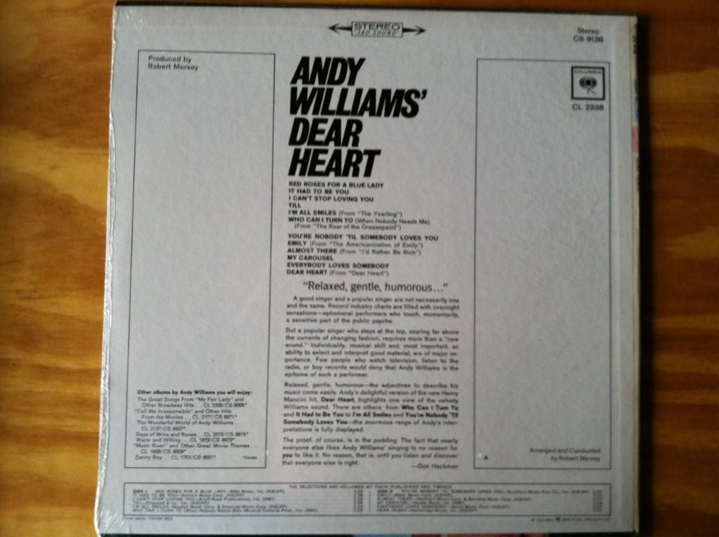 Andy Williams, Dear Heart in Mint condition. Album is still sealed.