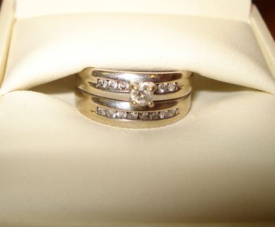 This is for a white gold and diamond double band wedding ring. I was only married for a few short months so it was hardly used. Retail for this ring is $1100, I paid $700, and it has 1/3 TW diamonds in the first ring and 1/6 TW in diamonds in the second. I purchased it at Samuels has lifetime warranty.