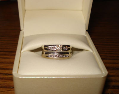 This is for a 10K white gold and diamond double band wedding ring. I was only married for a few short months so it was hardly used. Retail for this ring is $1100, I paid $700, and it has 1/3 TW diamonds in the first ring and 1/6 TW in diamonds in the second. I purchased it at Samuels has lifetime warranty.