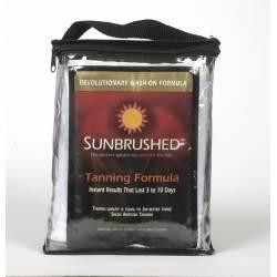 Sunbrushed? is a self-applied tanning system. You simply wash your skin surface using the tanning product with a special micro-fiber wash cloth. The tan results are immediate. During at least a five hour waiting period your golden tan will continue to darken. Sunbrushed? reacts with the amino acids in the outer layer of the skin. The skin?s reaction looks natural as if tanned from the sun.